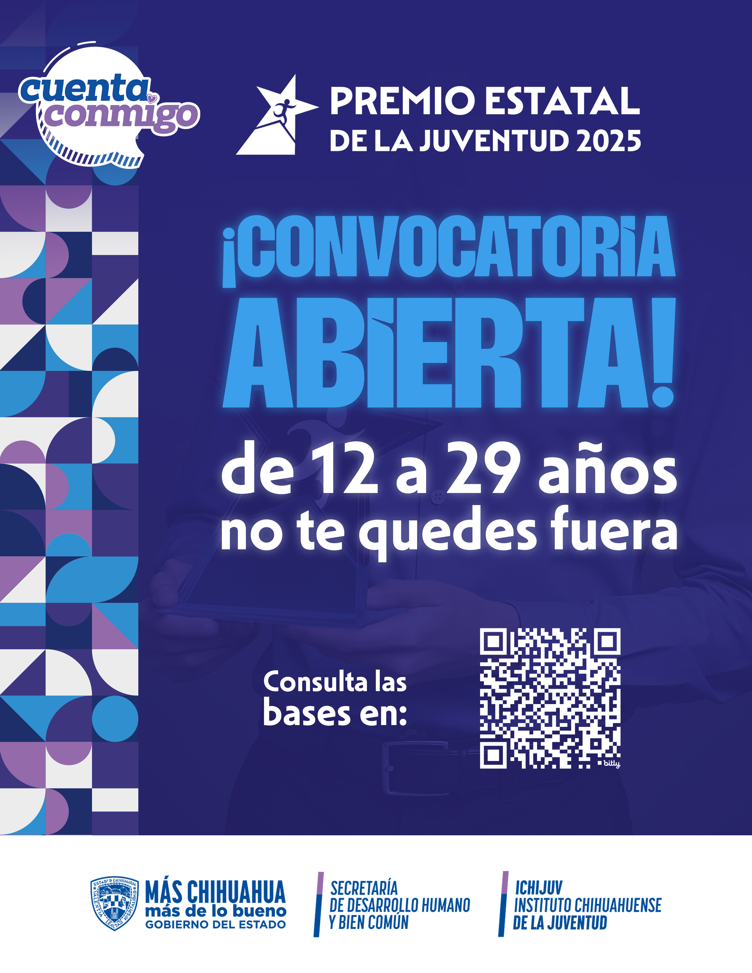 El Gobierno del Estado de Chihuahua, a través del Instituto Chihuahuense de la Juventud (Ichijuv) presentó la convocatoria para el Premio Estatal de la Juventud 2025, reconocimiento que se otorga a las juventudes chihuahuenses por su talento, esfuerzo y compromiso con el desarrollo de la entidad.