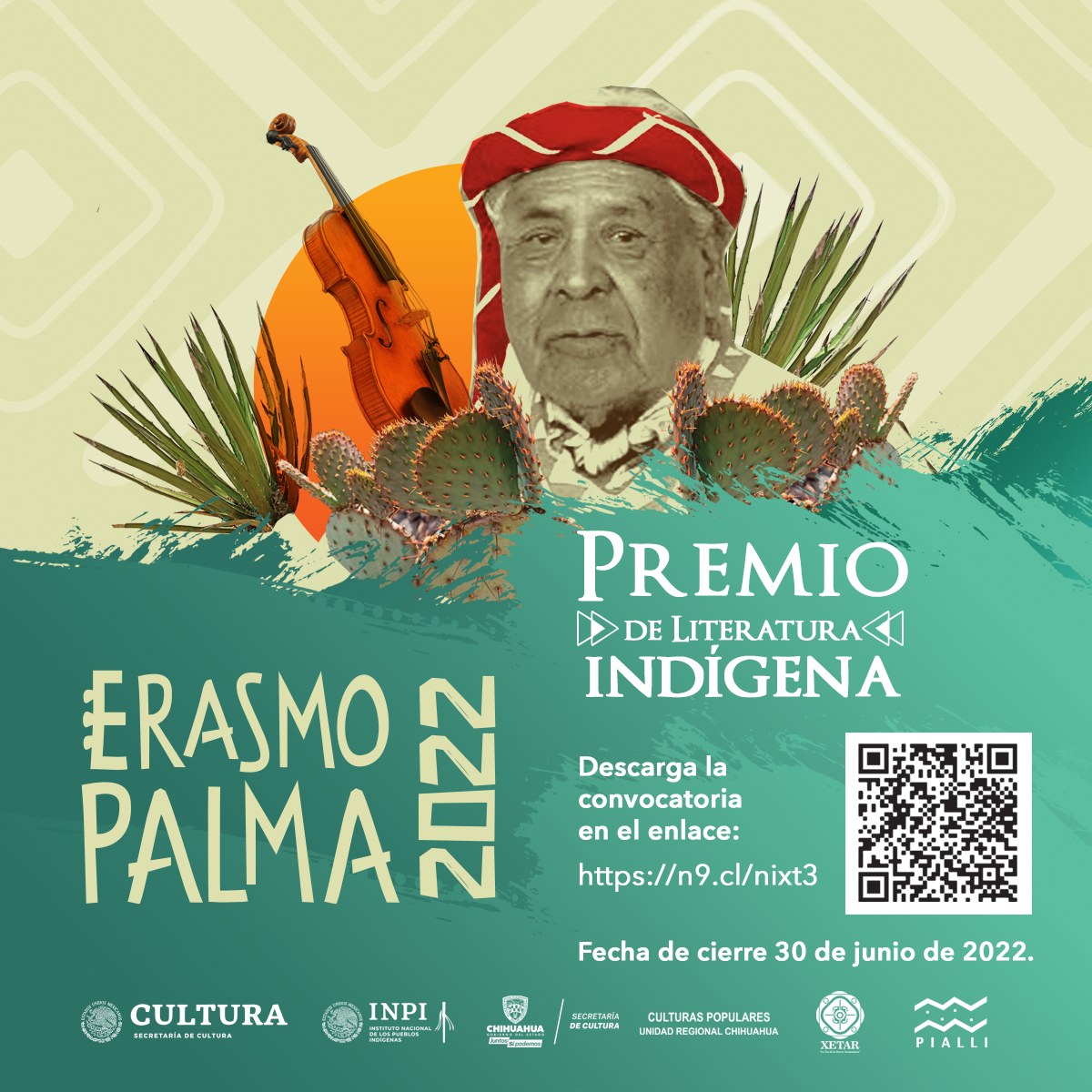 La Secretaría de Cultura del Estado de Chihuahua, a través del Departamento de Culturas Étnicas y Diversidad, invita a las y los ciudadanos a participar en la convocatoria Premio de Literatura Indígena Erasmo Palma 2022, cuya bolsa de premiación establece un monto de $30,000 (treinta mil pesos), tanto para la mejor obra escrita, como para obra oral. Ambas con su respectiva publicación en físico.