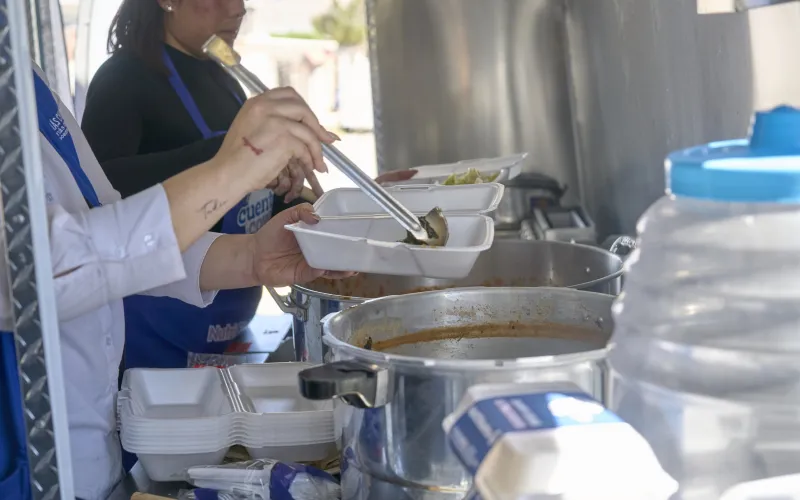 Gracias a la gestión de un ciudadano, la unidad móvil de NutriChihuahua acudió a la colonia Riberas de Sacramento, donde distribuyó más de 200 platillos en apoyo a familias del sector.