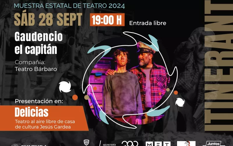 En Delicias, “Teatro Bárbaro” compañía originaria de la capital, presentará “Gaudencio el capitán”, que se presentará en el teatro al aire libre “Jesús Gardea” de la Casa de la Cultura, en punto de las 19:00 horas.