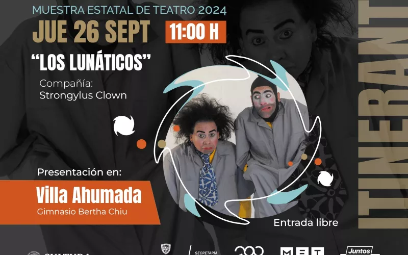 Para Ahumada se tendrá la presentación de la compañía “Strongylus clown” de la ciudad de Chihuahua, con la puesta en escena “Los lunáticos”, en el gimnasio Bertha Chiu el jueves 26 de septiembre a las 11:00 horas.