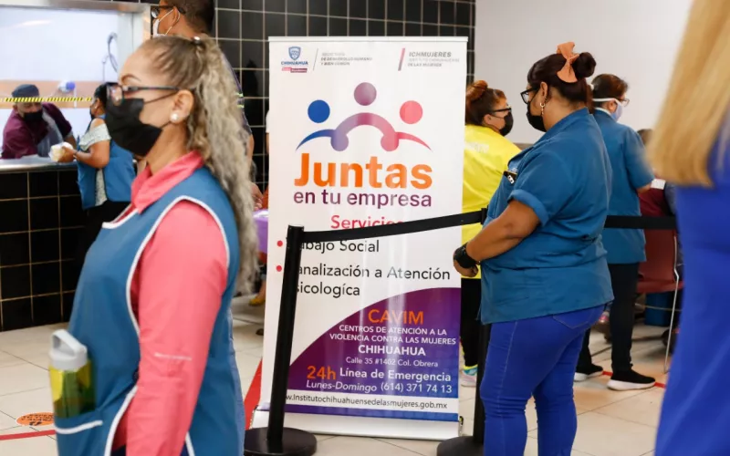 El Instituto Chihuahuense de las Mujeres (Ichmujeres), a través del programa “Juntas en tu empresa”, llevó servicios de prevención y atención a la violencia a colaboradoras de la maquiladora Adient Ediasa y entregó 200 tarjetas de descuento del programa “Juntas Podemos Ahorrar”, con la que acceden a descuentos en establecimientos afiliados.