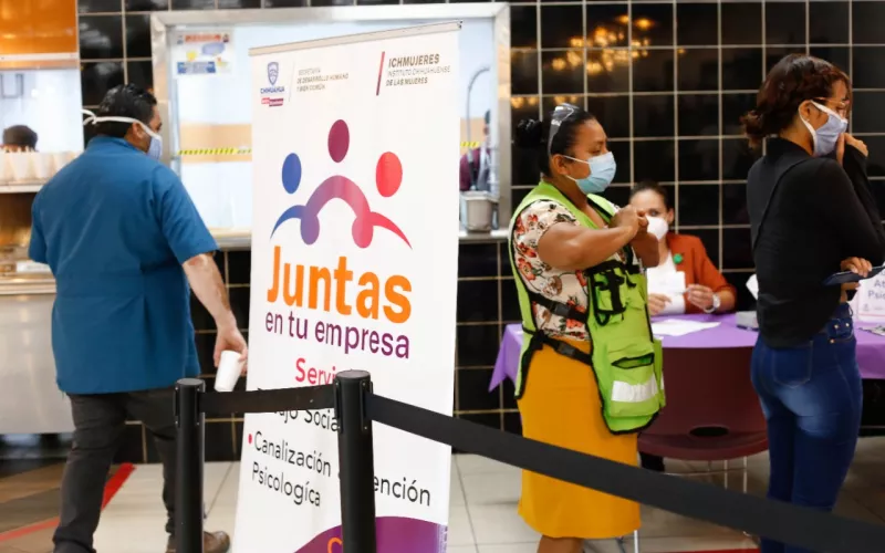 “Juntas en tu empresa” se desarrolla en conjunto con la Asociación de Maquiladoras y Exportadoras (Index) Juárez y consiste en llevar servicios de trabajo social, asesoría jurídica y atención psicológica a las colaboradoras de esta industria en sus centros de trabajo, donde además se promueve la educación en materia de género.