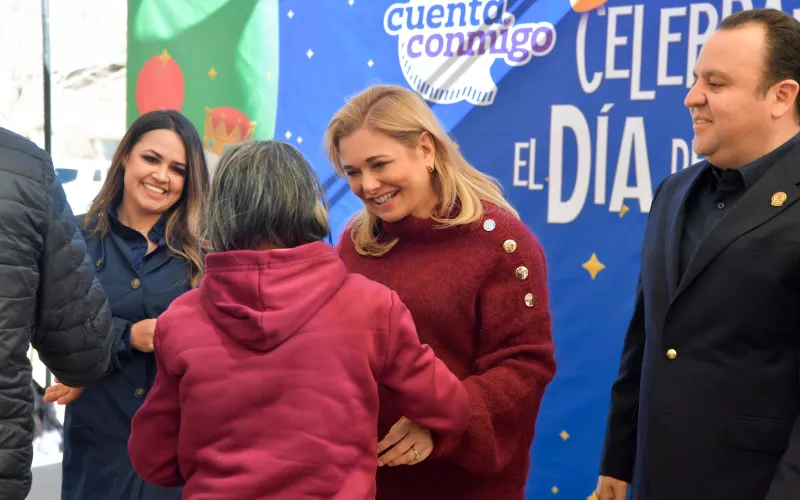 Como parte de las actividades, la titular del Ejecutivo partió la tradicional Rosca de Reyes junto a la alcaldesa Blanca Marioni y el secretario de Desarrollo Humano y Bien Común, Rafael Loera.