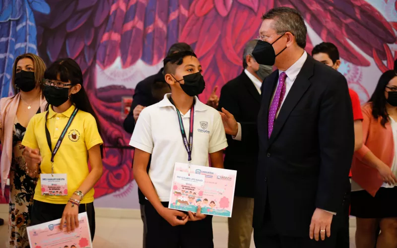 Encabezando el gabinete infantil, fungió como Representante de la Gobernadora en la Zona Norte, Erick Alexander López Vázquez, alumno de sexto grado de la escuela Paquimé.