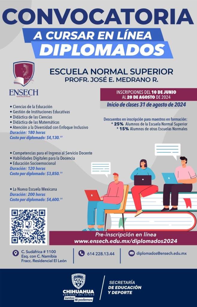 Como parte de las alternativas de profesionalización constante del magisterio y sociedad en general, la Escuela Normal Superior del Estado “Profr. José E. Medrano R.” (ENSECH) invita a cursar alguno de los ocho diplomados en línea con los que cuenta la institución y que forman parte del catálogo de la Unidad del Sistema para la Carrera de las Maestras y Maestros (USICAMM).