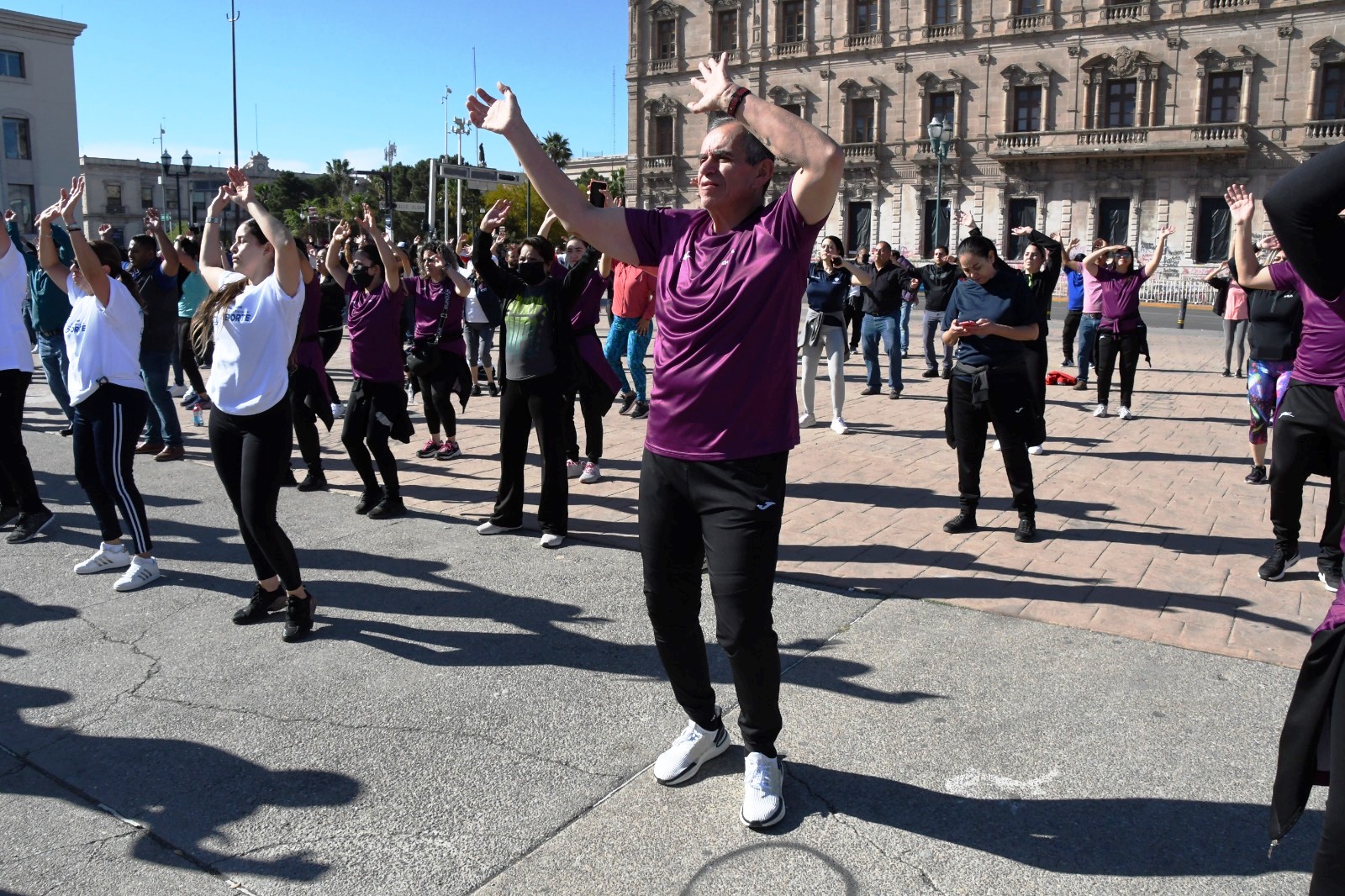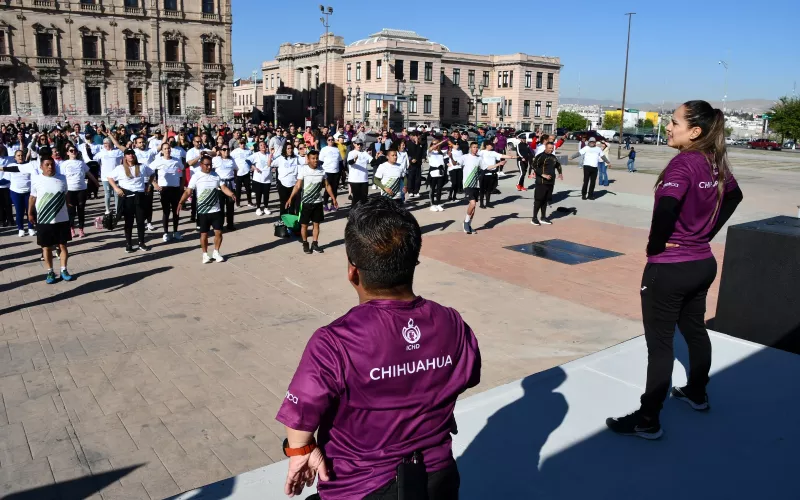 El Gobierno del Estado, a través de la Secretaría de Educación y Deporte (SEyD) y del Instituto Chihuahuense del Deporte y Cultura Física (ICHD) realizó una jornada masiva de activación física laboral en la Plaza del Ángel, en un ambiente de fiesta, compañerismo y al ritmo de diferentes canciones.