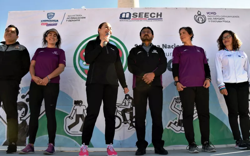 Durante la actividad se contó con la participación de poco más de mil trabajadoras y trabajadores de las diversas dependencias estatales, así como del Congreso del Estado y de la Presidencia Municipal de Chihuahua, quienes se sumaron a los festejos de la Semana Nacional de Cultura Física y Deporte.
