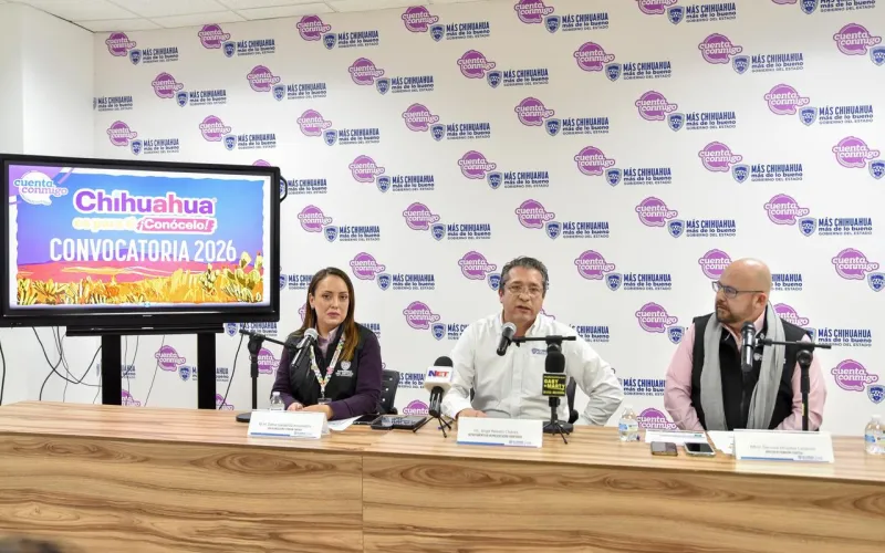 La Secretaría de Turismo presentó en Ciudad Juárez la convocatoria del programa “Chihuahua es para ti ¡Conócelo! 2026”, cuyo objetivo es impulsar los eventos con identidad turística para detonar el desarrollo económico e integral de las diferentes regiones de la entidad.