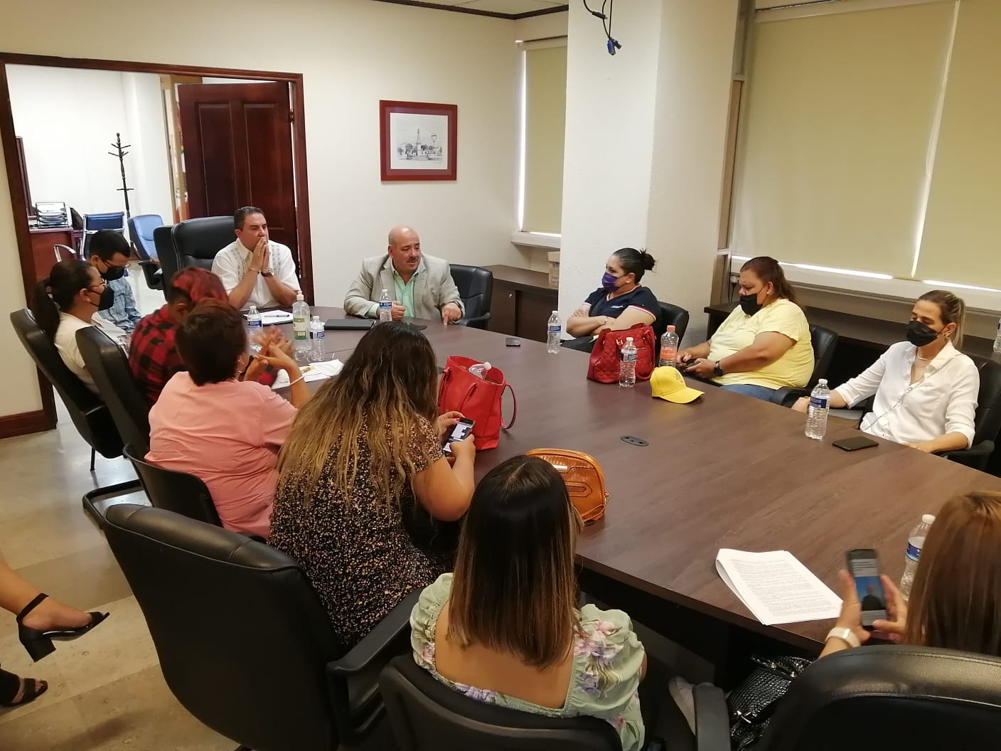 El subsecretario de Educación Básica, Lorenzo Arturo Parga Amado; el subsecretario de Planeación y Administración, Miguel Orta Vélez; y personal de la Secretaría General de Gobierno, sostuvieron una reunión con una comitiva de asesoras y asesores del PRONI.