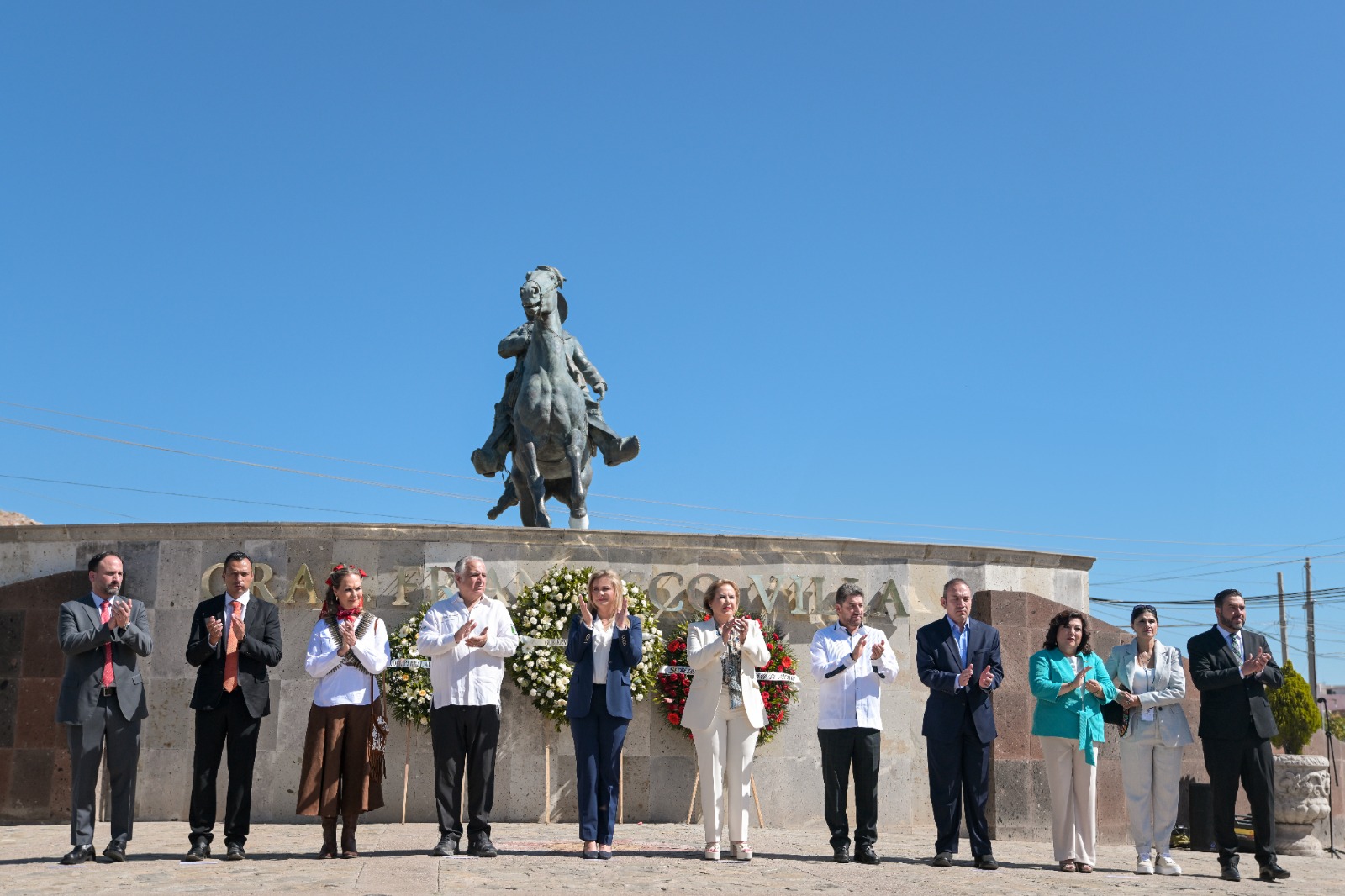 La gobernadora Maru Campos, encabezó en Parral la Guardia de Honor que se montó como homenaje al general Francisco Villa, en el marco de la conmemoración por su primer Centenario Luctuoso.