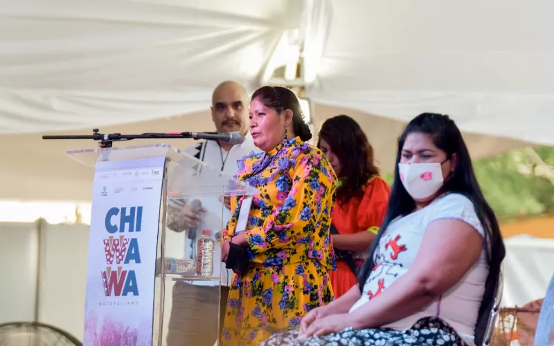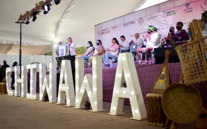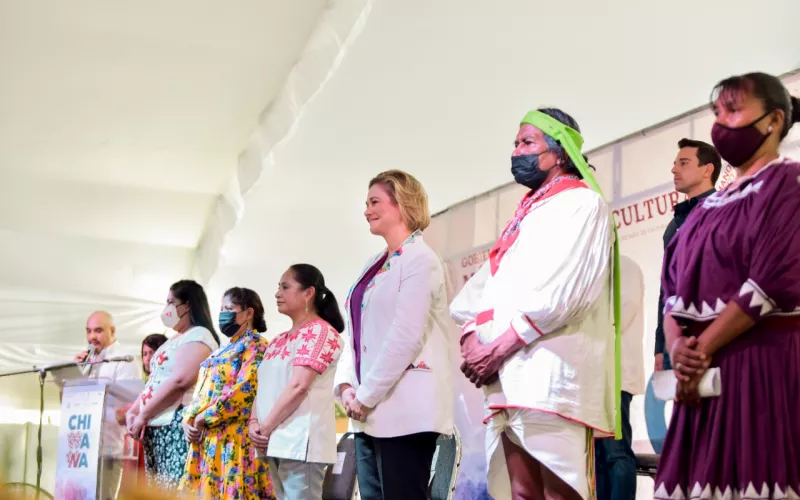 La Gobernadora Maru Campos Galván encabezó en la Plaza del Ángel, la ceremonia inaugural del Festival Cultural y Expo Venta “Chiwawa Natepáliame”, que se realizará durante todo el fin de semana, en el marco de la celebración del Día Internacional de los Pueblos Indígenas.