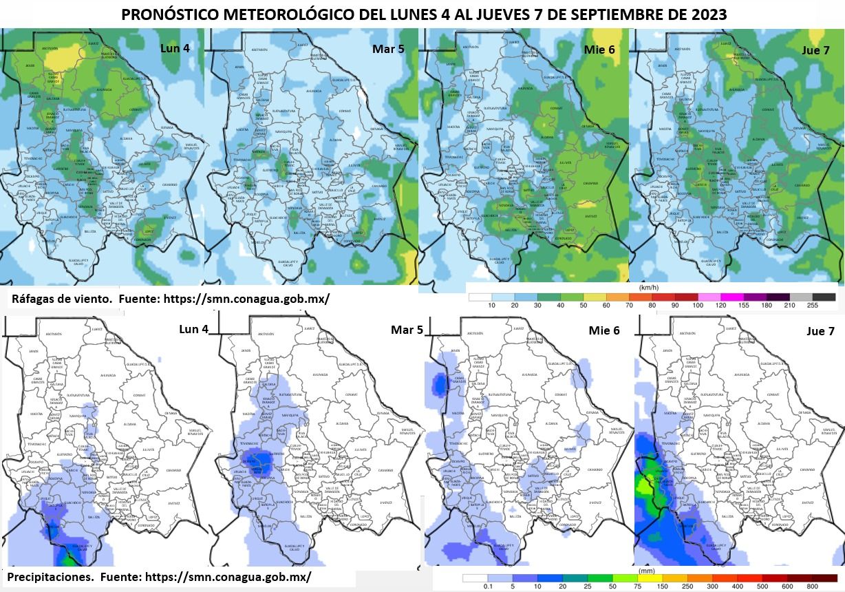 Con base en el pronóstico que emite el Servicio Meteorológico Nacional, la dependencia estatal informó que, para este lunes 4 de septiembre, el monzón mexicano favorecerá un ambiente de templado a cálido por la mañana y de caluroso a muy caluroso por la tarde, con temperaturas frescas en la zona serrana.