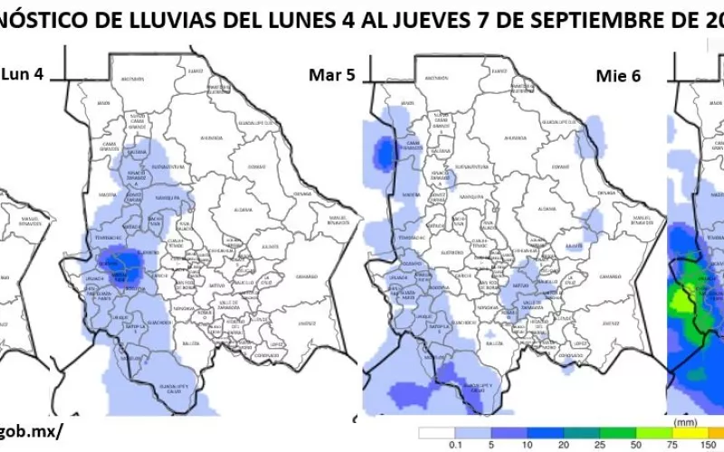En cuanto a las lluvias, estas serán de dispersas a moderadas con chubascos de 5.1 a 25 milímetros (mm) en partes de la zona suroeste, lluvias de aisladas a dispersas con 2.1 a 5 mm en el suroeste y centro, las cuales pueden estar acompañadas de actividad eléctrica y posible caída de granizo.