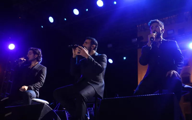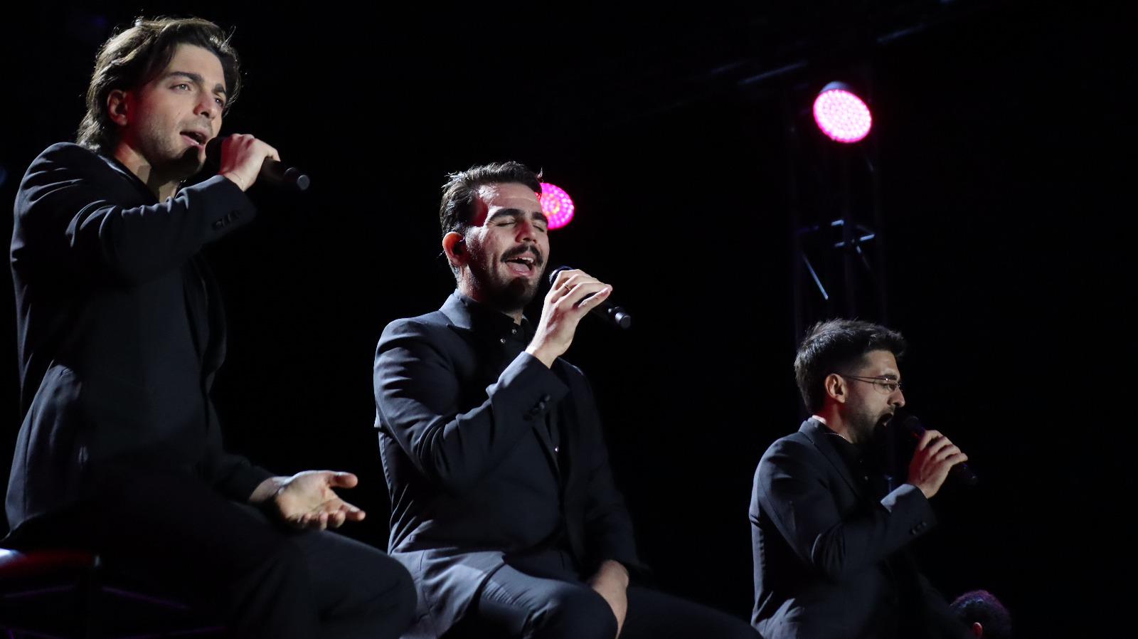Dirigidos por el maestro César Velázquez Hernández, abrieron con los acordes de "Ecstasy of gold" Gianluca Ginoble, lo que dio paso a la aparición sobre el escenario de Ignazio Boschetto y Piero Barone, integrantes de la reconocida agrupación.