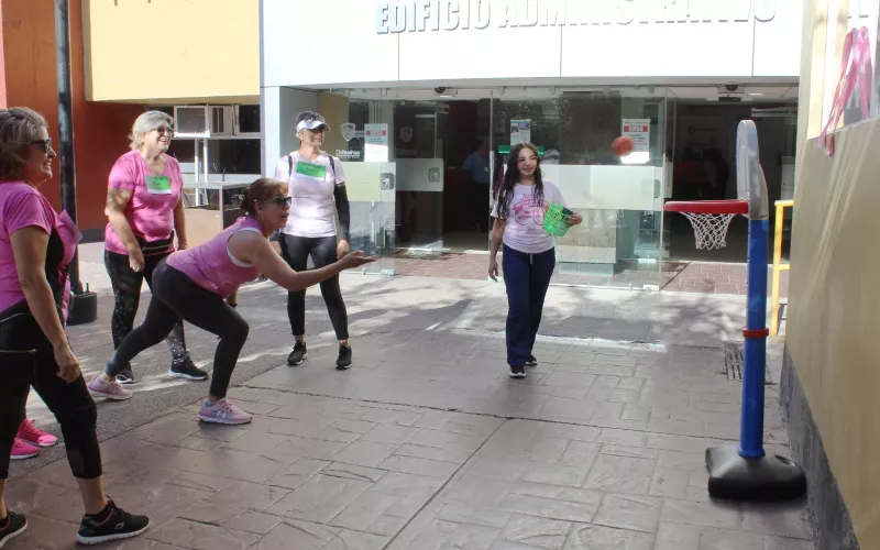 Durante el rally rosa, las alumnas realizaron diferentes actividades como juegos con globos, pláticas sobre el cáncer, pruebas de obstáculos, relevos y activación física, entre otras.