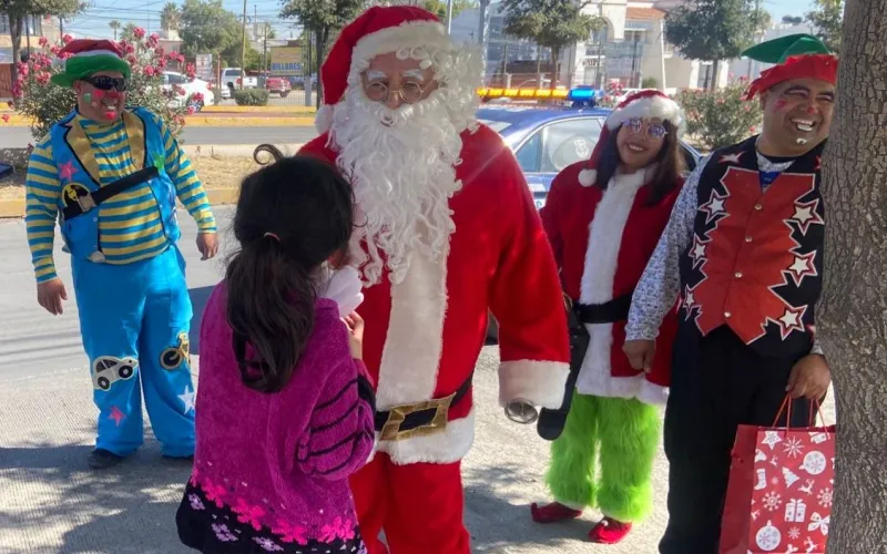 Durante la jornada, los elementos disfrazados entregaron dulces y pequeños obsequios a niñas y niños en situación vulnerable, para ofrecerles un momento de alegría, convivencia y espíritu navideño.