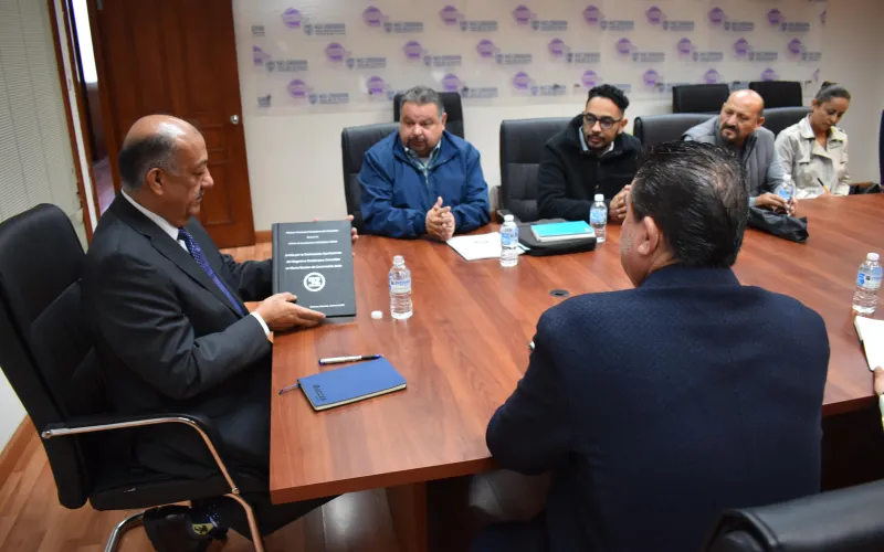 El secretario de Educación y Deporte, Francisco Hugo Gutiérrez Dávila, recibió de manos de una comitiva representativa de la Sección 42 del Sindicato Nacional de Trabajadores de la Educación (SNTE), el informe de las propuestas del Magisterio Estatal para fortalecer el Marco de Convivencia Escolar.