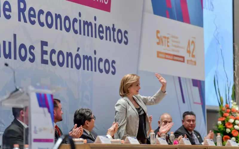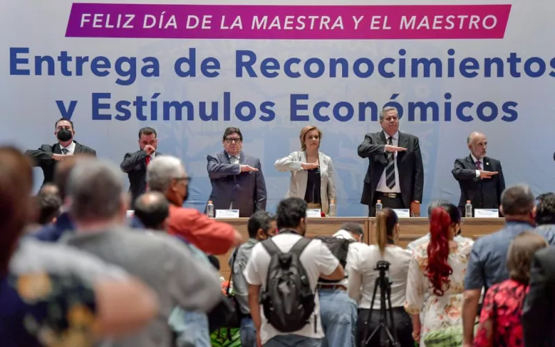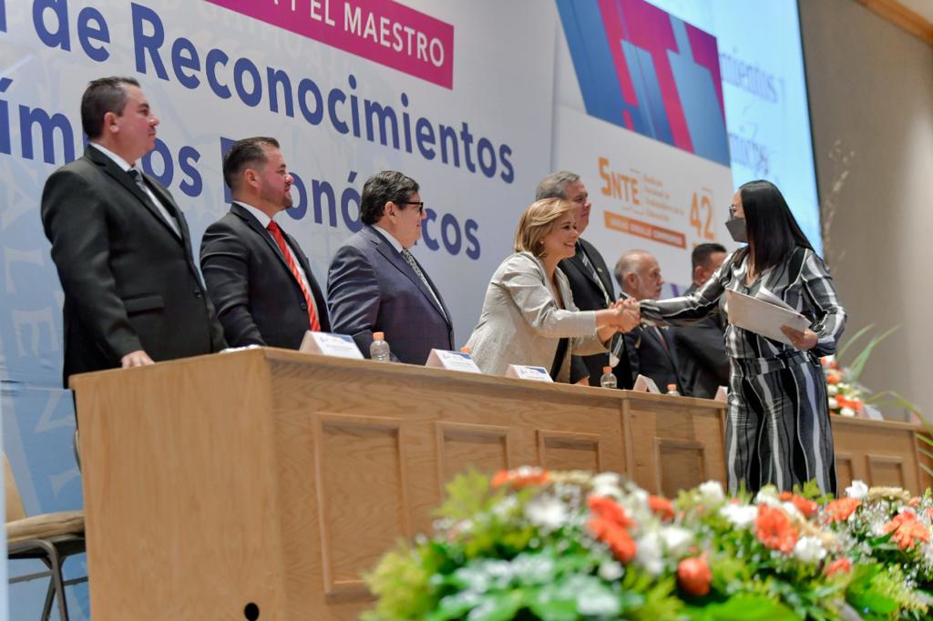 Para conmemorar el Día de la Maestra y el Maestro, la gobernadora Maru Campos Galván y el secretario general de la Sección 42 del Sindicato Nacional de Trabajadores de la Educación (SNTE), Manuel Quiroz Carbajal, hicieron entrega de estímulos económicos y reconocimientos, así como de la prestación denominada Seguro Mutualista, a 246 docentes y personal directivo de los niveles Básico y Superior que cumplen 28 y 30 años de servicio.