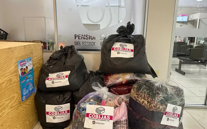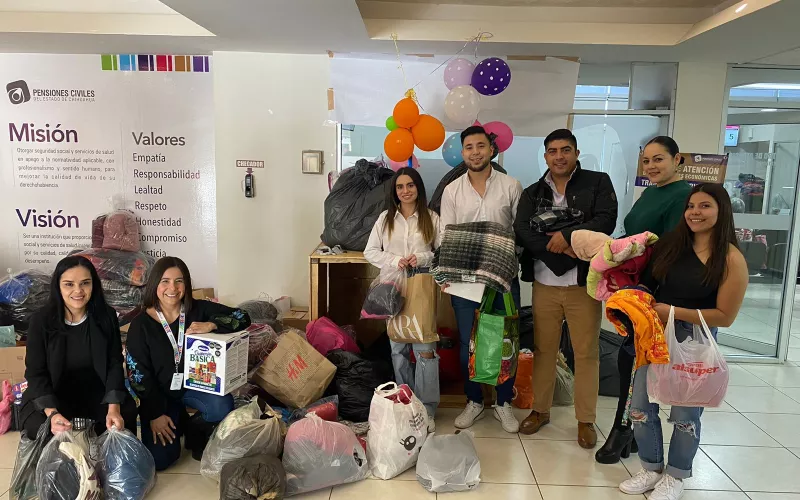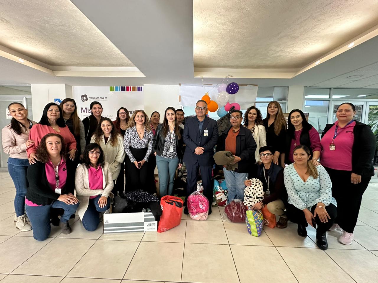 El personal de Pensiones Civiles del Estado (PCE) recolectó 260 chamarras, 300 piezas de alimentos no perecederos y 80 cobijas para la campaña “Juntos Sin Frío” organizada por el DIF Estatal.