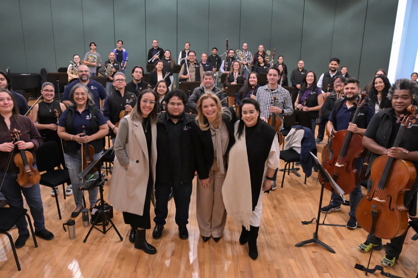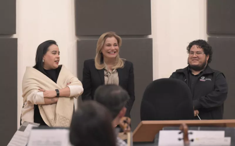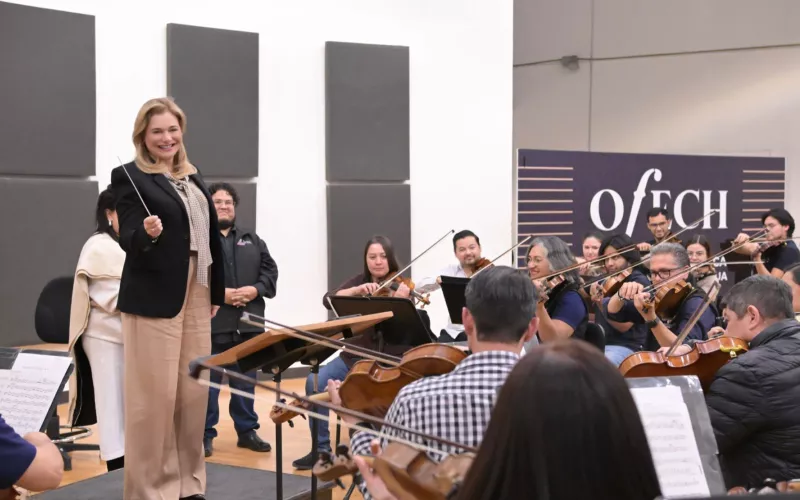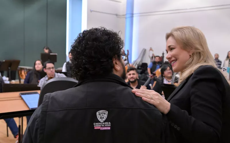 La gobernadora Maru Campos sorprendió a los integrantes de la Orquesta Filarmónica del Estado de Chihuahua (OFECh) durante un ensayo, donde los felicitó por posicionar a la entidad como un referente cultural a nivel mundial.