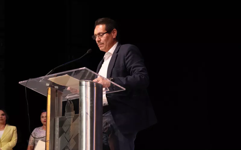 En representación de la Gobernadora Maru Campos, Granillo Vázquez destacó que, gracias a su trabajo, el Gobierno del Estado puede ofrecer atención a la población a través de sus servicios médicos, de seguridad, educación y programas de apoyo social como la tarjeta “Juntas Podemos Ahorrar”, para generar mejores condiciones de vida a las y los chihuahuenses.