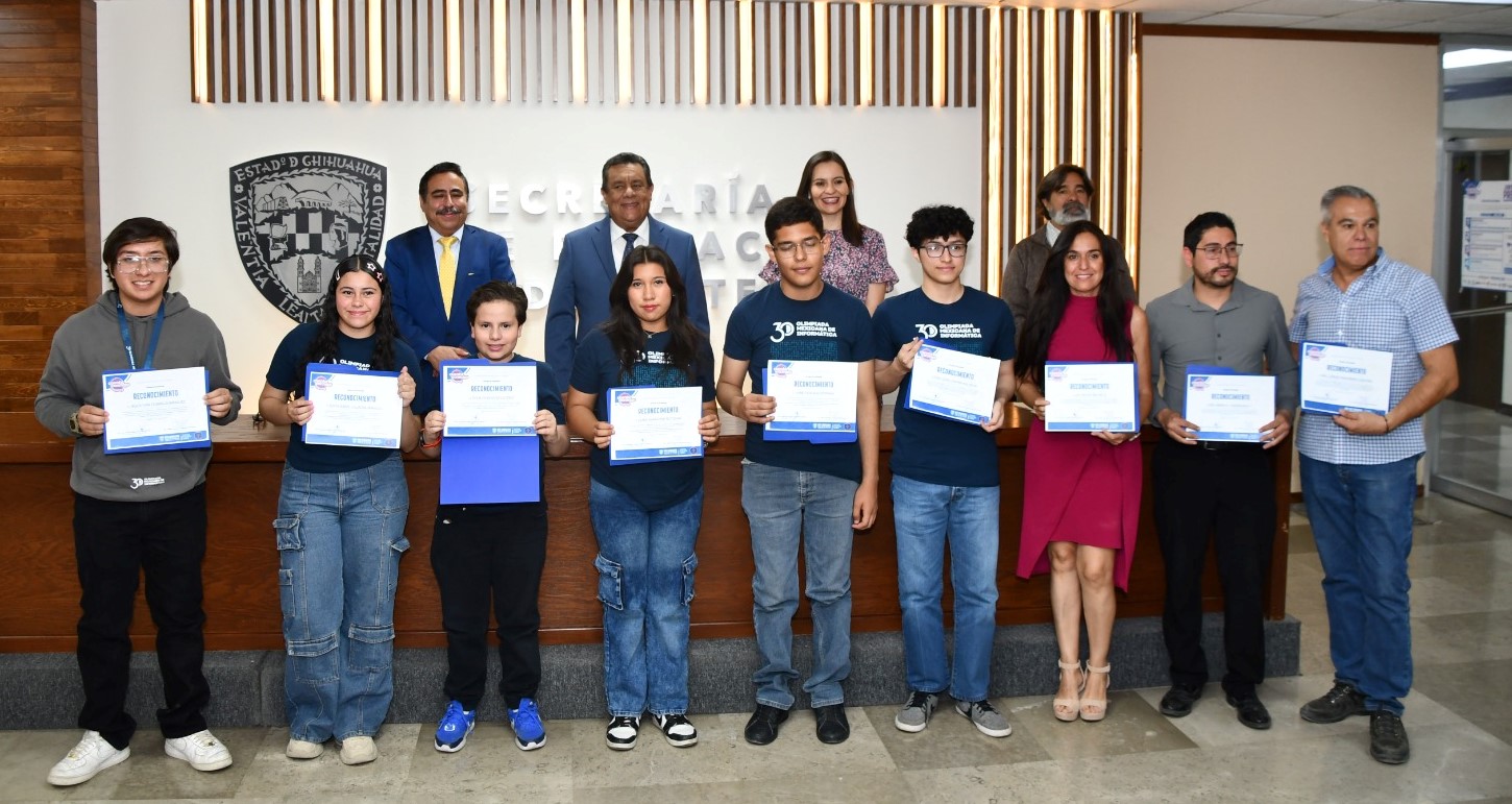 Felicitó particularmente a dos estudiantes que obtuvieron mención honorífica, así como a Jesús Iván Rivera Domínguez, quien se hizo acreedor a la medalla de bronce, “su desempeño es motivo de orgullo para Chihuahua y ejemplo para toda la comunidad estudiantil”, enfatizó.