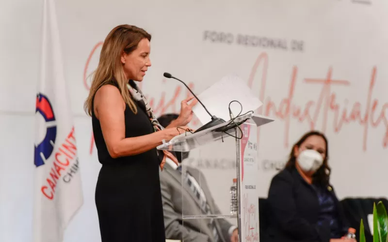 Al hacer uso de la palabra, la secretaria de Innovación y Desarrollo Económico agradeció poder representar al Gobierno del Estado en el equipo de mujeres de empresarias de CANACINTRA Y reiteró el compromiso que se tiene con el sector industrial por parte de la actual administración en colaboración con los gobiernos municipales y les dio a conocer que en una anterior gira por Canadá, empresarios de este país.