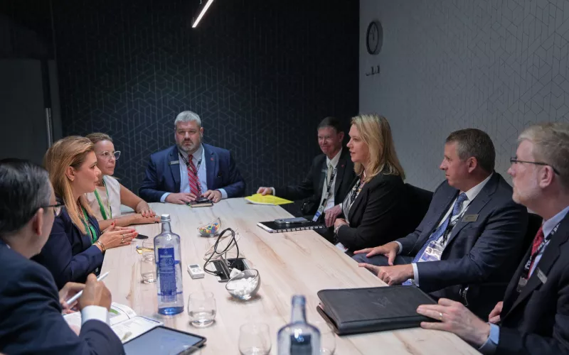 Como parte de la agenda de trabajo que realiza por Francia, en el marco de la Feria Aeroespacial Paris Air Show 2023, la Gobernadora Maru Campos, se reunió con altos ejecutivos de la empresa Bell Helicopter.