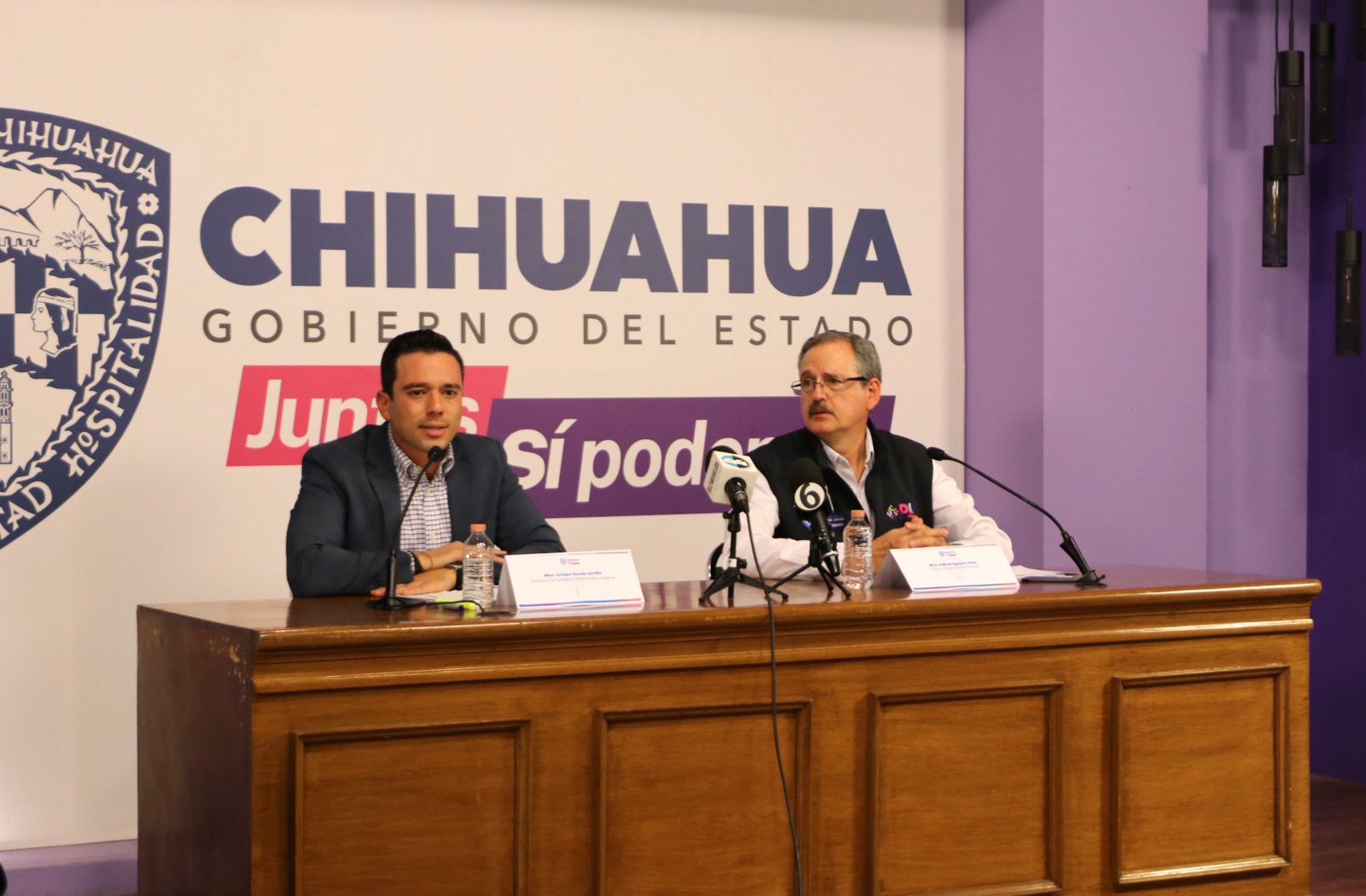 El director general del DIF Estatal, Gabriel Eguiarte Fruns, y el secretario de Pueblos y Comunidades Indígenas, Enrique Alonso Rascón Carrillo dieron a conocer los avances de la estrategia Juntos por la Sierra Tarahumara, en respuesta a la contingencia por la sequía que afecta la Sierra Tarahumara.