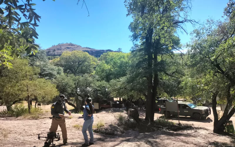 Aunado a lo anterior, se compraron teléfonos satelitales, luces forenses y lentes para la detección de evidencia genética, baterías adicionales para drones, una estación total para delimitar con exactitud las áreas de trabajo en predios de gran tamaño y un perro con adiestramiento especial en búsqueda forense.