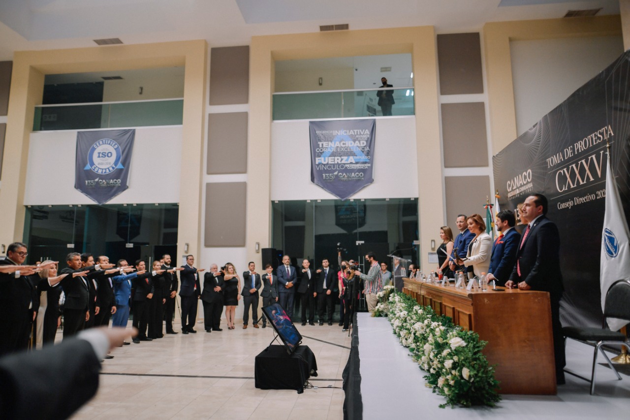 “Quiero decirles que los retos presentes y los retos futuros, los vamos a enfrentar de manera conjunta, y que no están solos, nadie está solo en la Canaco”, afirmó.