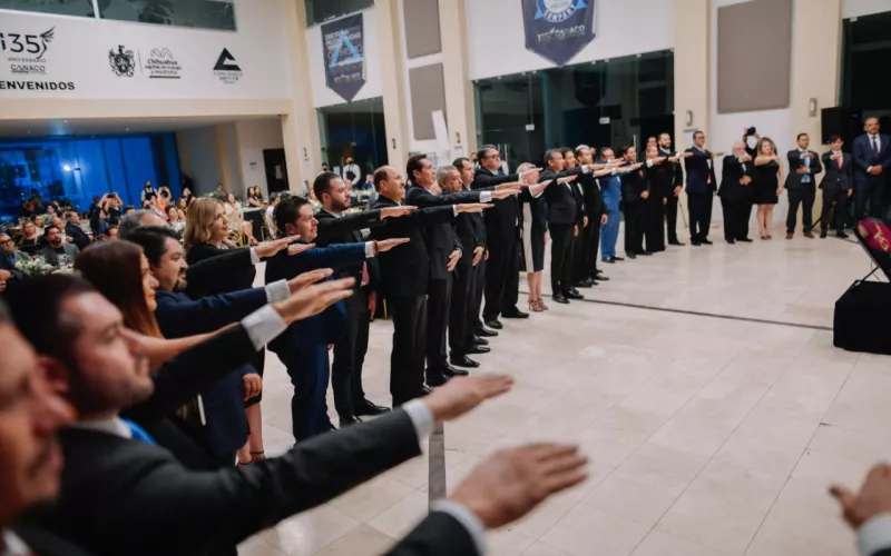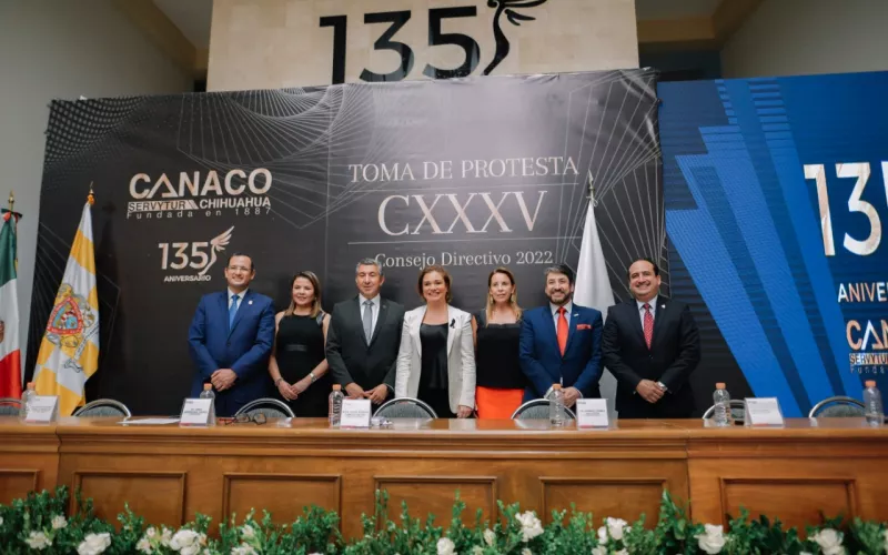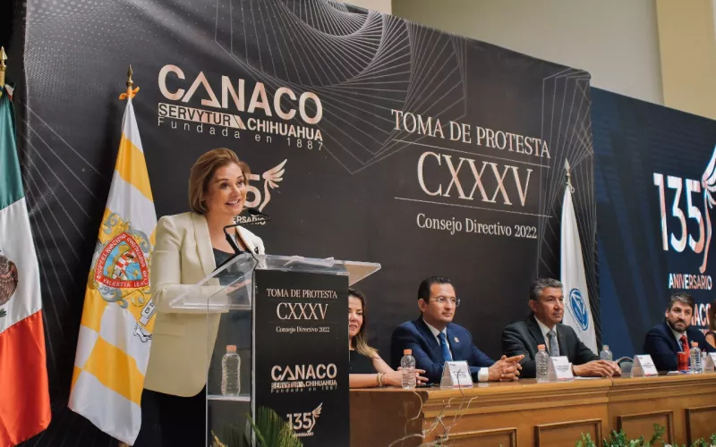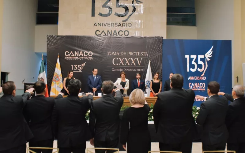 La Gobernadora Maru Campos Galván, tomó protesta a los integrantes de la nueva mesa directiva de la Cámara Nacional de Comercio, Servicios y Turismo (Canaco) de la ciudad de Chihuahua, que será presidida Omar Armendáriz Jurado.