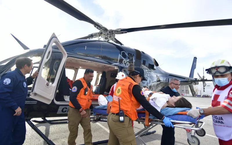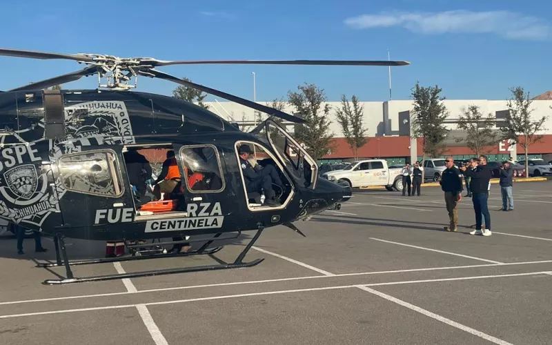 El traslado se efectuó a bordo del Helicóptero Bell 429 que es operado por pilotos de la SSPE. La aeronave está equipada con tecnología de vanguardia, lo que garantizó un traslado seguro y rápido, que tuvo como destino final el Hospital General de la ciudad de Chihuahua.