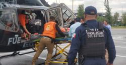 - A bordo del helicóptero Bell 429 de la Secretaría de Seguridad Pública del Estado; llegó a la...