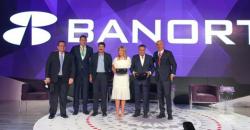 Les cede el Lábaro Patrio el secretario de Educación y Deporte, Pablo Cuarón; el gobernador Javier...