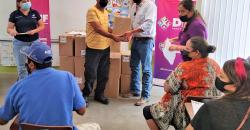 - Entrega despensas, pañales, insumos médicos, frijol, arroz y un andador con asiento