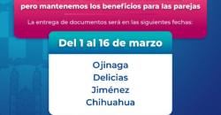 La recepción de documentación en Ojinaga, Delicias, Jiménez y Chihuahua se llevará a cabo del 1 al...