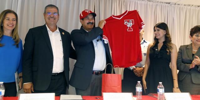El presídium estuvo integrado por Javier Corral, gobernador del Estado;  Alejandra de la Vega, secretaria de Innovación y Desarrollo Económico; Pablo Cuarón Galindo, secretario de Educación y Deporte; Hermenegildo Lagarda, director del Instituto Tecnológico de Ciudad Juárez; Marla Almodóvar, representante de los estudiantes del ITCJ, y Leticia Gutiérrez, egresada exitosa de este tecnológico y empresaria.