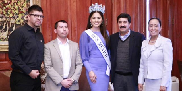 El gobernador Javier Corral recibió en su despacho de jefe del Ejecutivo a la chihuahuense Andrea Meza, quien recientemente representó al país como Miss México y obtuvo el segundo lugar en el 67º Certamen Internacional Miss Mundo 2017, que se celebró en la ciudad de Sanya, en China hace algunos días.