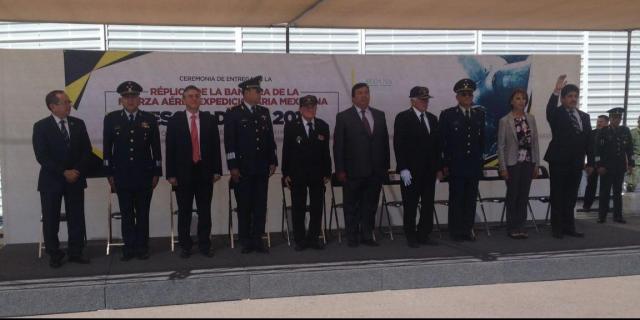 El secretario general de Gobierno, César Jáuregui Robles, asistió en representación del gobernador Javier Corral, a la ceremonia de Entrega de la Réplica de la Bandera de la Fuerza Aérea Expedicionaria Mexicana “Escuadrón 201”, que se celebró en las instalaciones de la Base Aérea Militar No. 13, de esta ciudad.