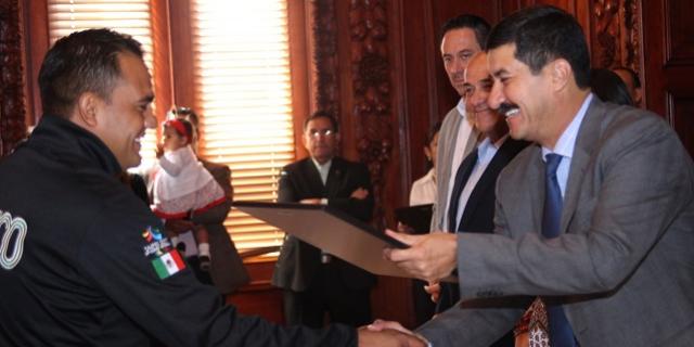 Damaris Aguirre Aldaz, ganadora de la medalla de bronce en la disciplina de halterofilia en las Olimpiadas de Beijing 2008 y 34 chihuahuenses que participaron en la Universiada Mundial de Taipéi de este año, recibieron reconocimientos de parte del gobernador Javier Corral Jurado.