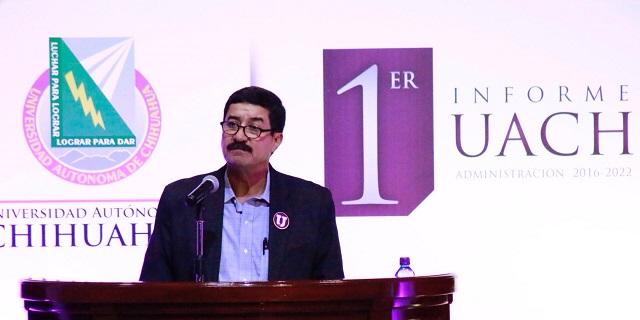 “Cuenten con mi total compromiso para seguir como un aliado de la UACH, siempre respetuoso de la autonomía universitaria, pero dispuesto a contribuir en cualquier impulso que busque la mejora en la educación superior” declaró el gobernador Javier Corral, al asistir al Primer Informe del rector de la Universidad Autónoma de Chihuahua, Luis Alberto Fierro Ramírez.
