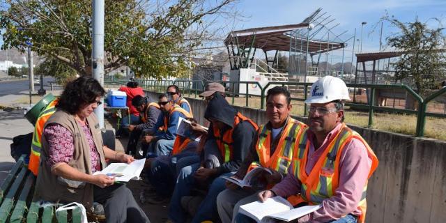 Ella atiende diferentes círculos de estudio y comenta que la atención cambia dependiendo de sus grupos, por lo que la “maestra Loera” -como le llaman algunos usuarios- inició con la promoción afuera de una construcción industrial, donde laboran decenas de trabajadores temporales migrantes de Sonora, Sinaloa, Zacatecas, Durango y de algunos municipios de Chihuahua.
