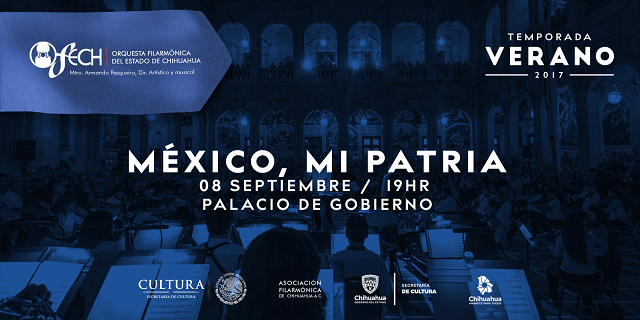 “México, Mi Patria” es el cuarto concierto en la Temporada de Verano de la Orquesta Filarmónica del Estado de Chihuahua (OFECH), un evento gratuito que tendrá lugar en el patio central de Palacio de Gobierno, este viernes 8 de septiembre a las 19:00 horas.