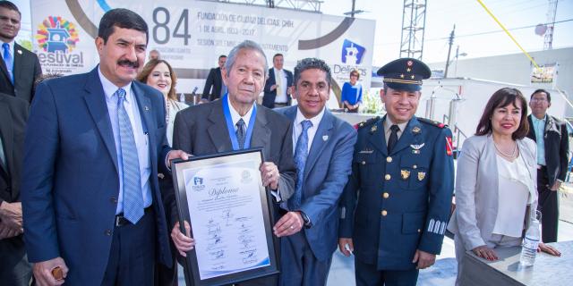 Con Sesión Solemne del Congreso del Estado, este día fue conmemorado el 84 Aniversario de la fundación de Delicias, y se entregó a Macario Guillén Rosales, la “Medalla al Mérito Ciudadano Fundadores”.