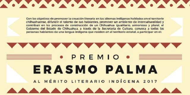 Para promover la creación literaria en las lenguas indígenas de Chihuahua, además de difundir el talento de sus hablantes en un ambiente de interculturalidad, el Departamento de Desarrollo Cultural de la Secretaría de Cultura, lanzó el pasado mes de septiembre la convocatoria para participar por el Premio Erasmo Palma al Mérito Literario Indígena 2017, que concluye el próximo martes 31 de octubre.